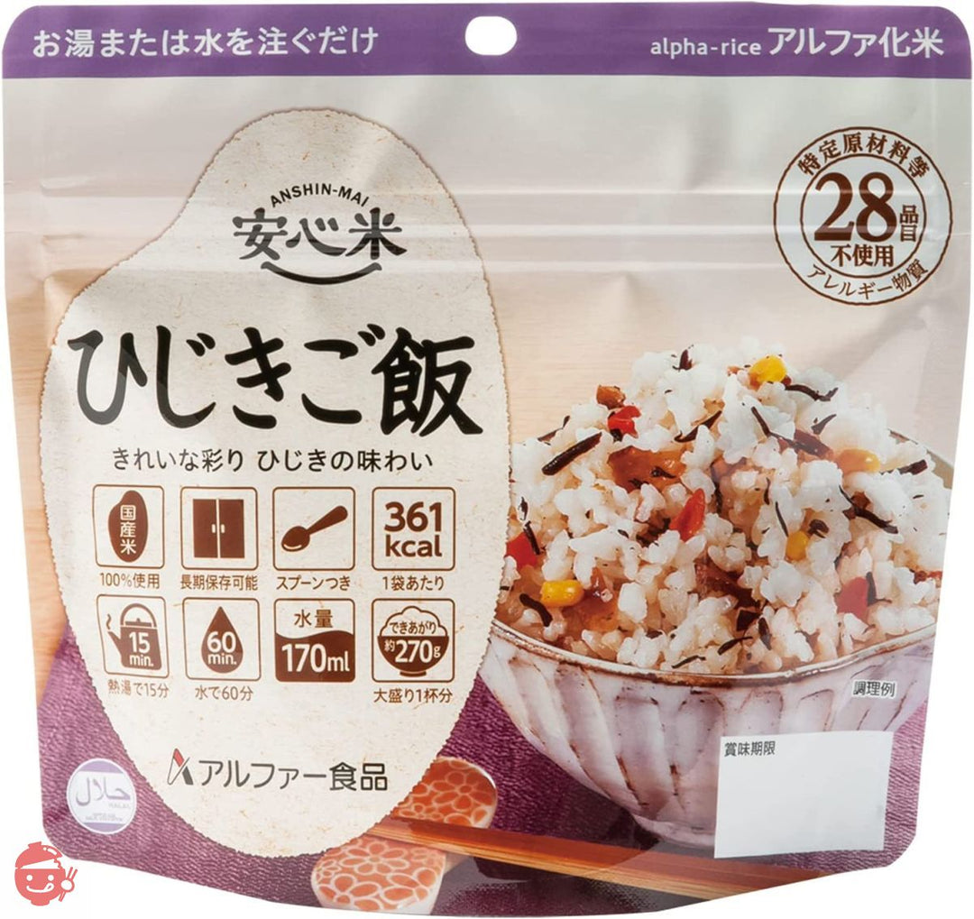 | 原材料 | うるち米(国産)、味付乾燥具材(食塩、デキストリン、乾しいたけ、ひじき、乾燥スイートコーン、乾燥にんじん、酵母エキス、砂糖) |