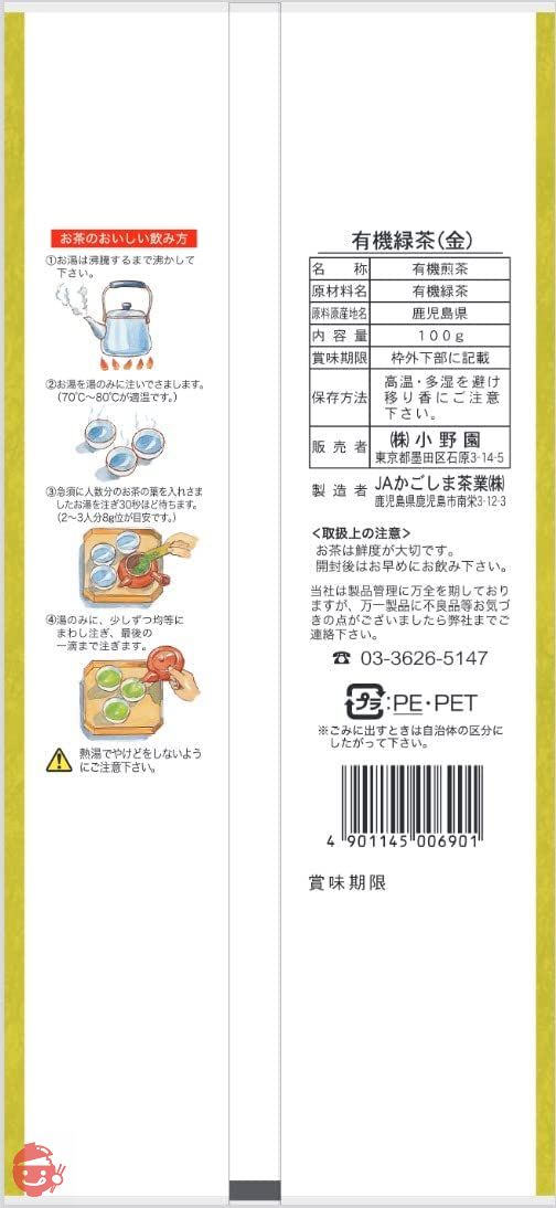 九州・鹿児島県産の有機栽培茶を使用した深蒸し茶です。