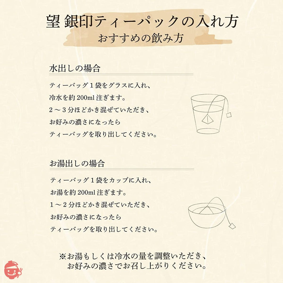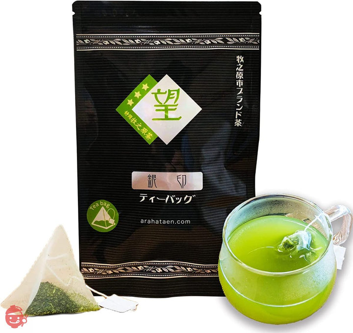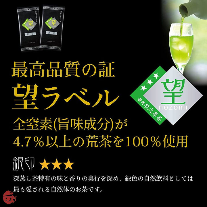 【望銀印】全窒素(旨味成分)が 4.7%以上の荒茶を100%使用。深蒸し茶特有の味と香りの奥行を深めたお茶で、緑色の自然飲料としては最も愛される自然体のお茶です。