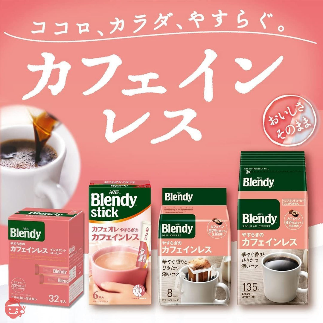AGF(エージーエフ) 「ブレンディ スティック」 カフェオレ やすらぎのカフェインレス6本は、カフェイン93%カットコーヒー使用。ミルクと溶け合うコクとやすらぎのカフェインレスカフェオレです。1杯1杯がいつも新鮮な個包装スティックタイプ。