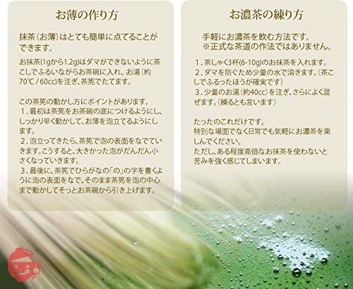 【使用方法】お茶、ケーキ、お菓子作りなど、様々な用途で扱えます。少量でも抹茶の風味・香りが強いので、少しづつ使用することをおススメします。