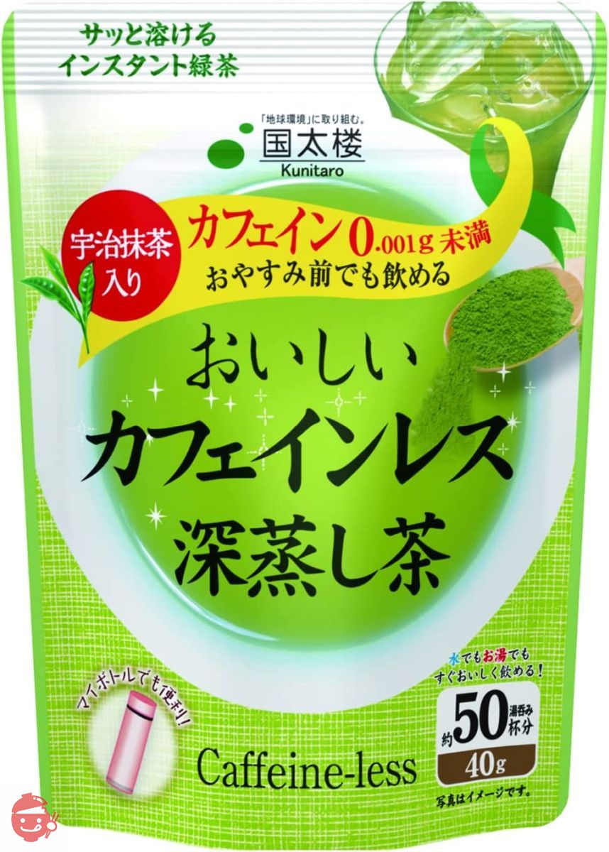 就寝前にも飲めるカフェイン0.001g未満のインスタント緑茶です。宇治抹茶の水色、まろやかな味わいが特長です。