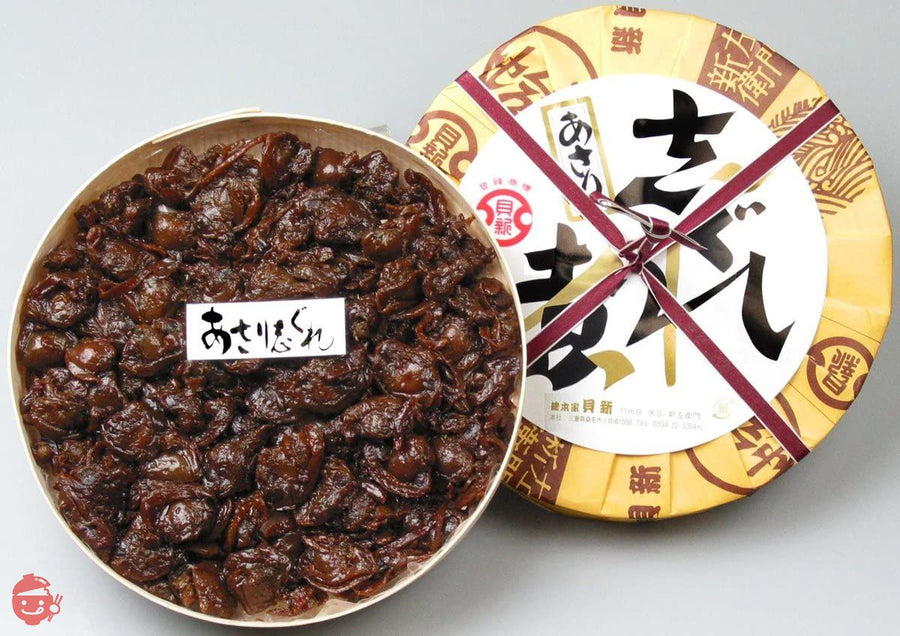 商品内容:あさり(105g)賞味期限:90日 5大アレルゲン:小麦 曲物サイズ:直径170mm×25mm 原材料名:あさり(中国)、醤油(大豆・小麦を含む)、還元水飴、本みりん、生姜、砂糖、水飴/調味料(アミノ酸等)