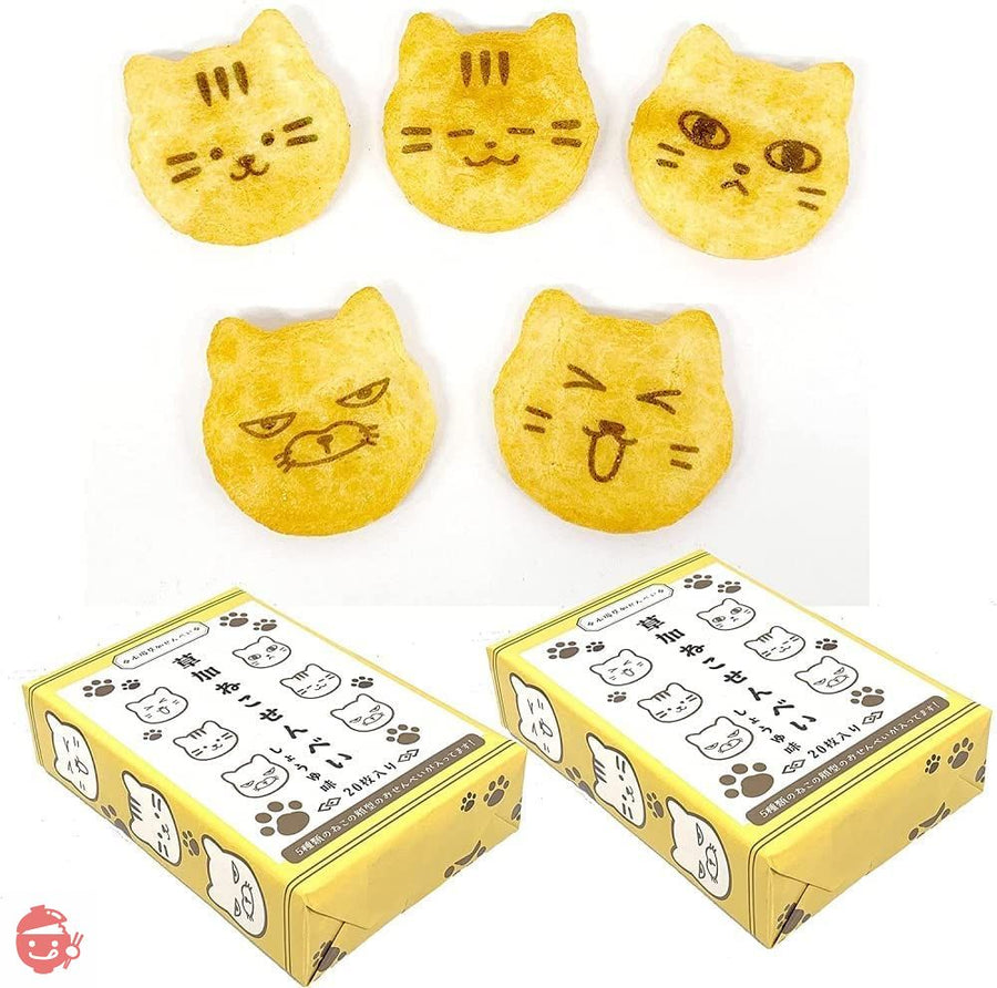 Each box contains 5 types of cat face-shaped rice crackers x 4, for a total of 20.