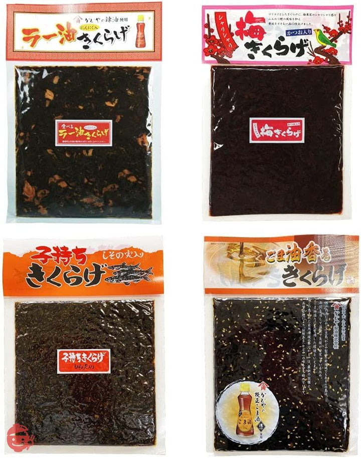 [Chili oil cloud ear mushroom] Soy sauce (including soybeans and wheat), sugar, cloud ear mushroom, rice fermented seasoning, sesame chili oil, fried garlic (garlic, edible oil), brewed vinegar, soup, bonito flavor seasoning, sorbit, seasoning (amino acids) etc.), preservative (potassium sorbate), sweetener (stevia), acidulant [Kikurage mushroom] soy sauce (including soybeans and wheat), sugar, cloud ear mushroom, fish roe, fermented rice seasoning, perilla seed, brewed vinegar, Bonito-flavored seasoning, sorbit, seasoning (amino acid, etc.), flavoring, preservative (potassium sorbate), sweetener (stevia), acidulant [Plum jellyfish] soy sauce (including soybeans and wheat), sugar, seasoning pickled plums ( Plum, salt, reduced starch syrup, others), cloud ear mushroom, fermented rice seasoning, dried bonito, brewed vinegar, bonito-flavored seasoning, sorbitol, seasoning (amino acids, etc.), acidulant, alcohol, sweetener (stevia), preservative ( Sorbic acid K), coloring (vegetable pigment, red 106, red 3) [sesame oil cloud ear mushroom] soy sauce, sugar, cloud ear mushroom, fermented seasoning, sesame oil, sesame, brewed vinegar, flavor seasoning/sorbit, seasoning (amino acids, etc.) , sweetener (stevia), preservative (potassium sorbate), acidulant, (contains soybeans, wheat, and sesame)