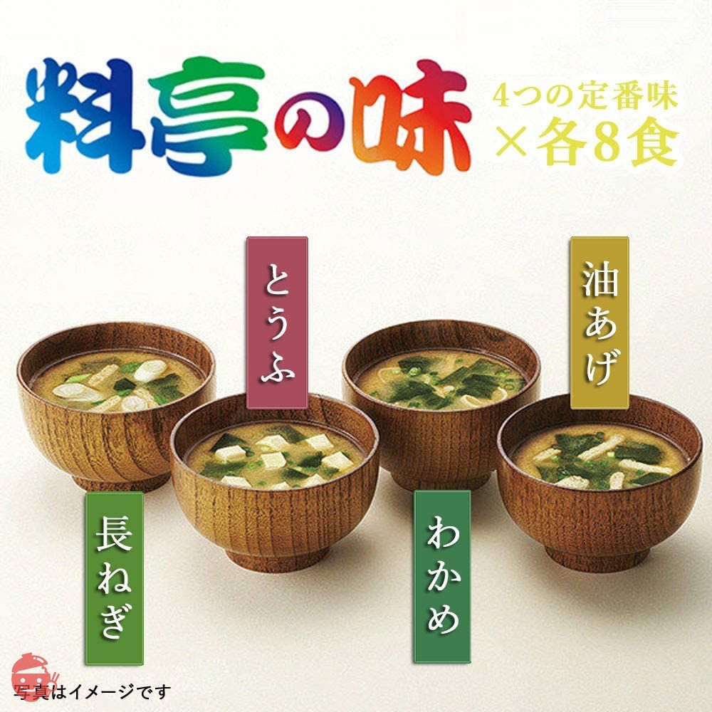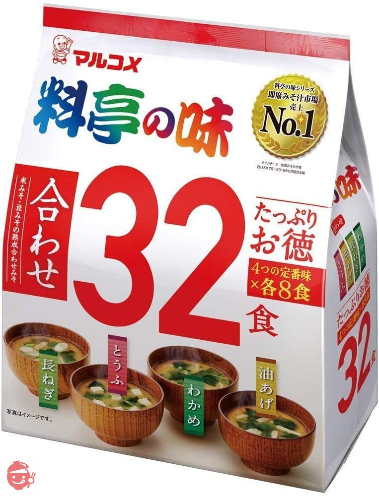 お徳用のみそ汁に、料亭の味シリーズが新登場! たっぷり32食入りで、手軽に本格的なおみそ汁がお楽しみいただけます。 赤系の米みそをかつおだし・昆布だし・煮干だしなどで調味し、風味豊かに仕上げました。具材はわかめ、油あげ、長ねぎ、とうふを各6食組み合わせ、それぞれの味を楽しめます。