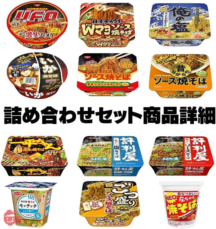 【焼きそばカップ 12種類 詰め合わせセット】 日清UFO、日清デカうまWマヨソース焼きそば、マルちゃん俺の塩、金ちゃん焼きそば、日清ソース焼きそば、ごつ盛りソース焼きそば、一平ちゃん夜店の焼きそば、評判屋塩焼きそば、評判屋ソース焼きそば、モッチッチ塩、昔ながらのソース焼きそば、金ちゃんNEO焼きそばの12種類セットです!