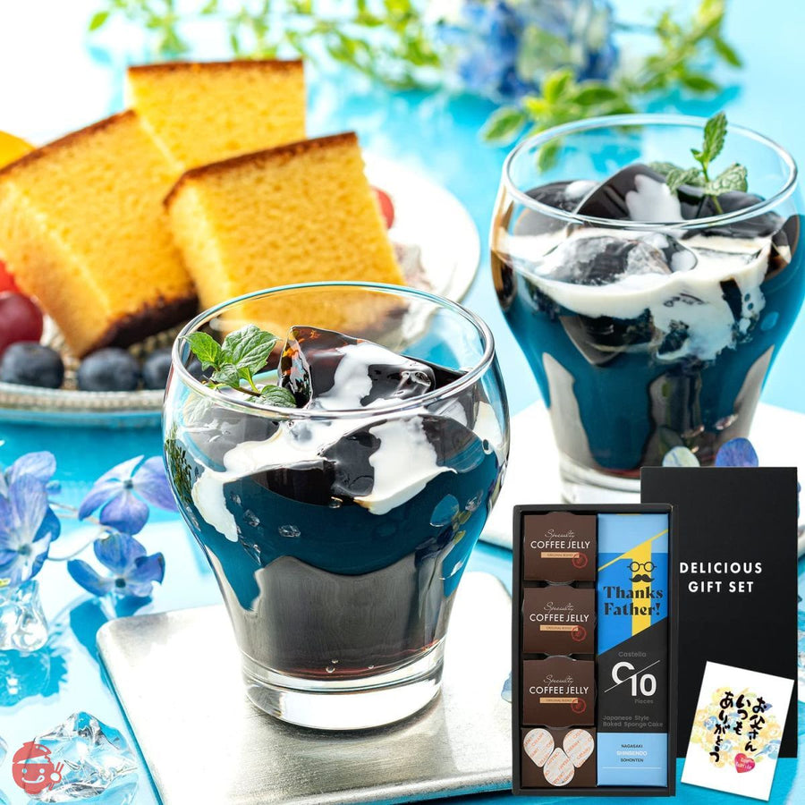 与使用最高品质的精品咖啡制成的咖啡果冻完美搭配的长崎卡斯提拉套装。