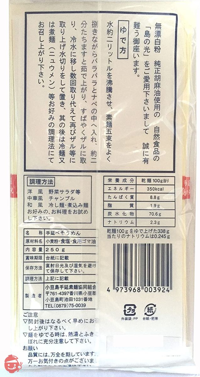这些素面是在位于濑户内海的香川县小豆岛精心制作的。是小豆岛的特产。这些素面像白线一样纤细而优雅。