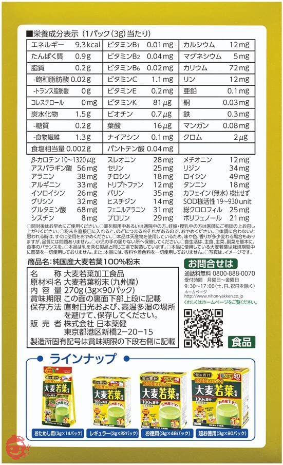 100% 蔬菜仅使用大麦嫩叶作为原料。解决蔬菜不足的问题。 |