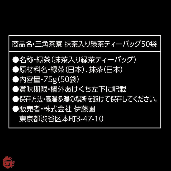 内容量:1.5g x 50 袋 容器:茶袋 成分:绿茶(日本)、抹茶(日本)