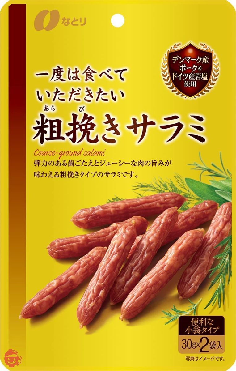 [成分] 猪肉(丹麦)、猪肉脂肪、粉状糖浆、食盐、香料、牛奶蛋白/山梨糖醇、变性淀粉、调味料(氨基酸等)、磷酸盐(Na)、抗氧化剂(维生素C)、显色剂(亚硝酸钠),(部分含有牛奶成分,大豆,猪肉)[成分]1个内袋(每30g)热量:133kcal,蛋白质:7.1g,脂肪:99g,碳水化合物:3.8g,盐当量:1.0g