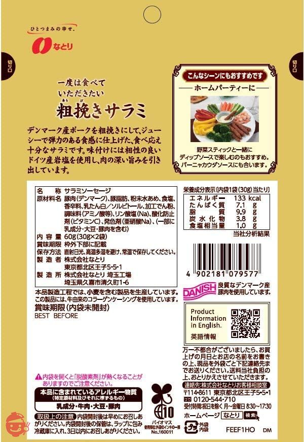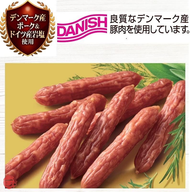 内容量:60g x 5 袋 原材料:猪肉(丹麦)、猪肉脂肪、淀粉糖浆粉、盐、香料、牛奶蛋白/山梨糖醇、变性淀粉、调味料(氨基酸等)、磷酸盐(Na)、抗氧化剂(维生素 C) )、着色剂(亚硝酸钠)、(含有牛奶成分、大豆、猪肉)