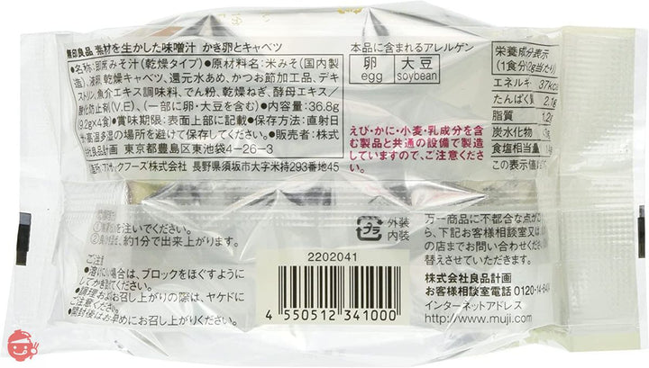 大米味噌(日本制造)、液体鸡蛋、干卷心菜、还原淀粉糖浆、加工鲣鱼片、糊精、海鲜提取调味料、淀粉、干葱、酵母提取物、抗氧化剂(VE)(部分含有鸡蛋和大豆)