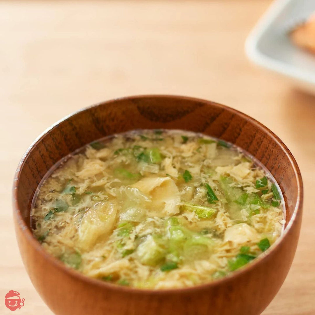产品介绍 用荷包蛋和卷心菜熬制而成的味噌汤,配料丰富。用甜米味噌制成,带出鸡蛋的味道。原料/成分: 大米味噌(日本制)、液体鸡蛋、干卷心菜、还原淀粉糖浆、加工鲣鱼片、糊精、海鲜提取调味料、淀粉、干葱、酵母提取物、抗氧化剂(VE)(部分鸡蛋、 (含有大豆)